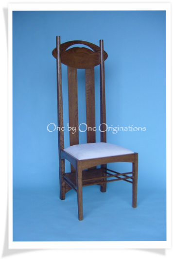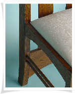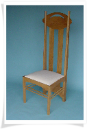 Again made from solid Oak, left natural or stained to a mid brown. The rear legs taper from a circle at the top to a rectangle at the seat pad which is upholstered in the same fashion as the Ingram chair.